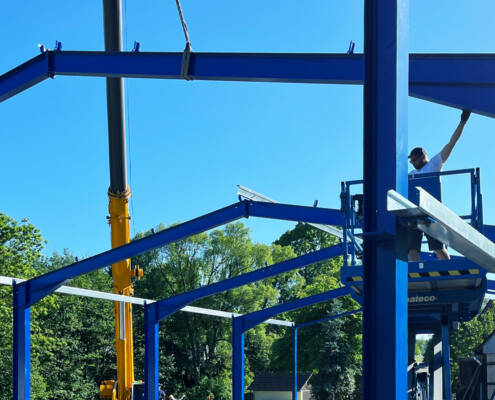 Funken, Präzision, Effizienz – in unserer Fertigung setzen wir auf moderne Technik. Mit der Plasma-Schneidanlage schneiden wir Stahlbauteile millimetergenau zu – schnell, zuverlässig und direkt bei uns im Haus. Warum das für den Hallenbau so wichtig ist, erfährst du im Beitrag.