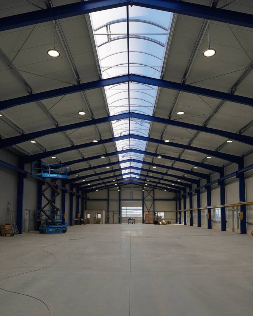 Die Stahlkonstruktion wurde von Friedrich Stahlhallen als statisch tragende Konstruktion in Form einer Satteldachhalle gefertigt und montiert.